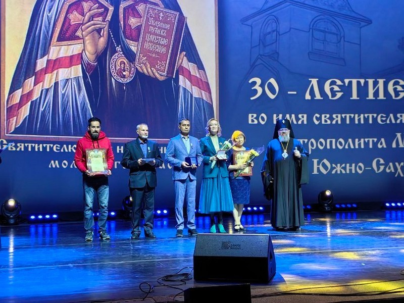 Приходы.ру 15.10.2024. В городе Южно-Сахалинске в честь 30-летнего юбилея храма святителя Иннокентия Московского прошёл большой праздничный концерт. Официальной частью концерта стала церемония награждения, которую открыл архиепископ Южно-Сахалинский и Курильский Никанор.
